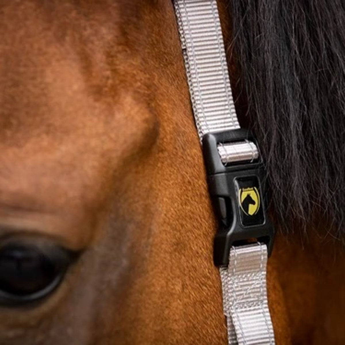 - Dank der Klickschnalle auch für junge oder kopfscheue Pferde geeignet