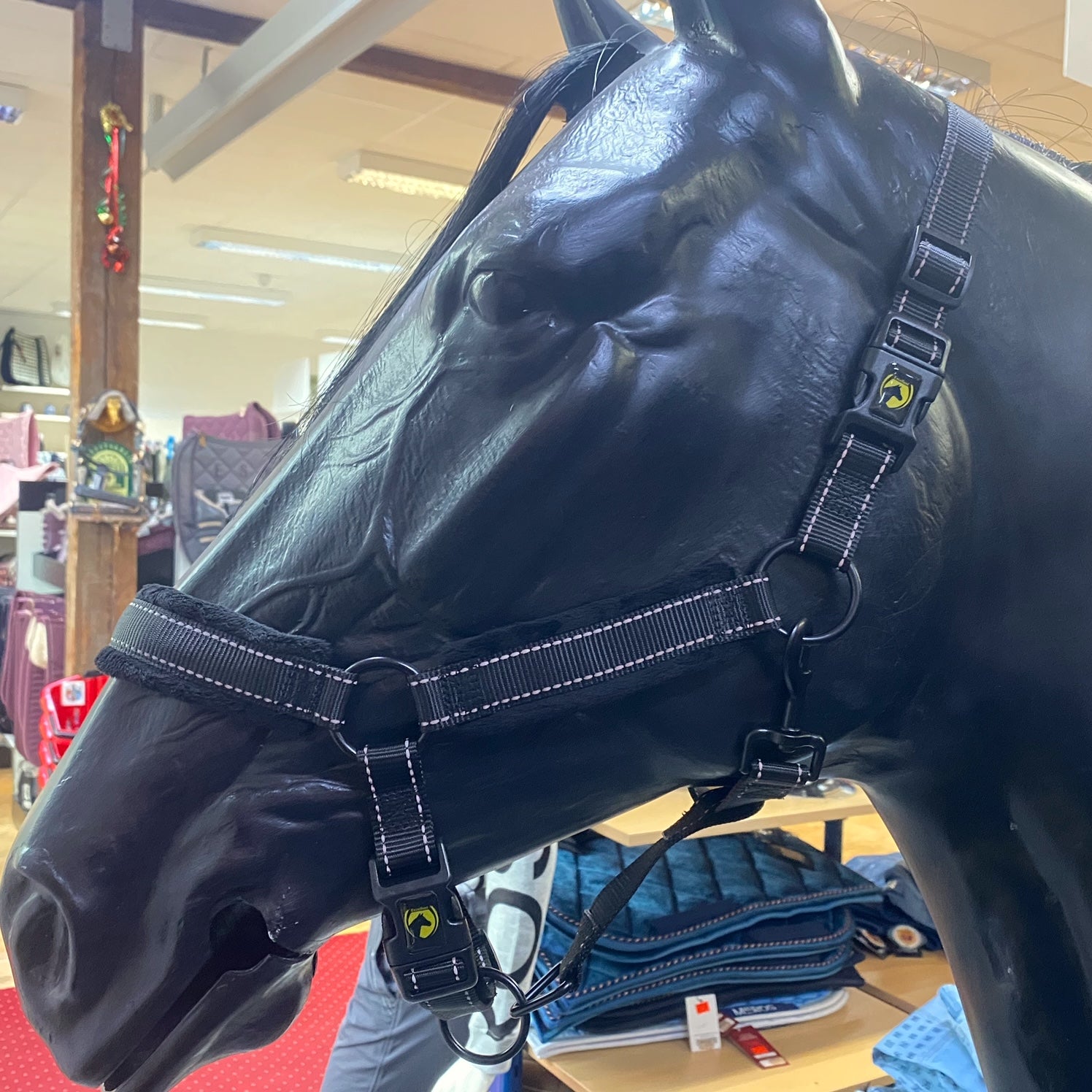 Mit den Superior-Halfter von Excellent Horse verbinden Sie Qualität mit Komfort und Bequemlichkeit. Das Halfter ist aus besonders dicht gewebtem Nylon hergestellt, was das Halfter extrem weich, flexibel und langlebig macht. Das Halfter ist außerdem mit Vlies am Nasenriemen und an den Kopfstücken ausgestattet, was ein Scheuern des Halfters verhindert. Um die Passform des Halfters zu optimieren, können Sie das Verstellsystem am Nasenriemen und am Kopfstück einfach nutzen. Auch diese Teile sind mit dem Klickverschluss ausgestattet, der ein sekundenschnelles An- und Ablegen des Halfters ermöglicht. Dadurch ist das Halfter auch für junge oder kopfscheue Pferde sehr gut geeignet. Und schließlich wird die Sicherheit im Dunkeln durch die zusätzlichen reflektierenden Details erheblich verbessert.