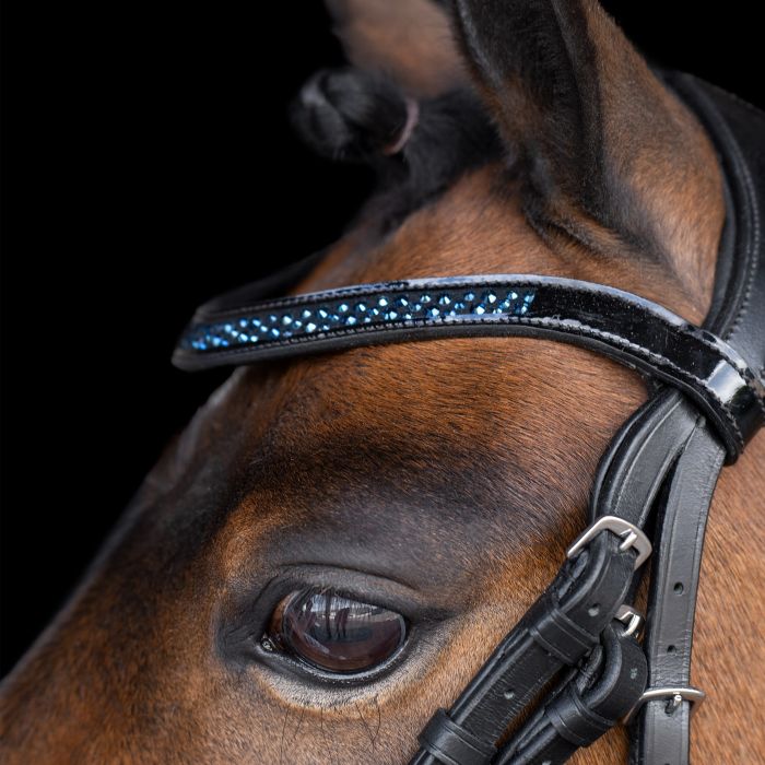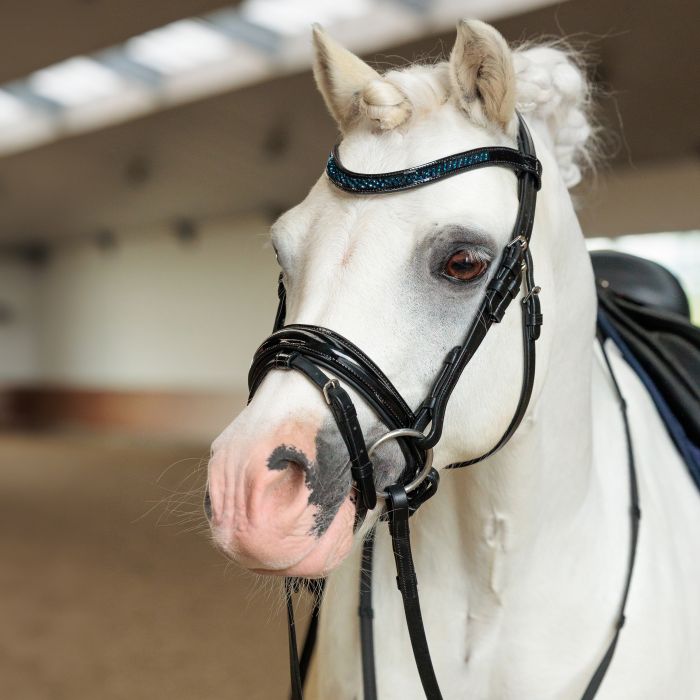 Stirnband mit Strasssteinen * Nasenband aus Lackleder * Logoprägung * Zügel mit Gummibeschichtung inklusive