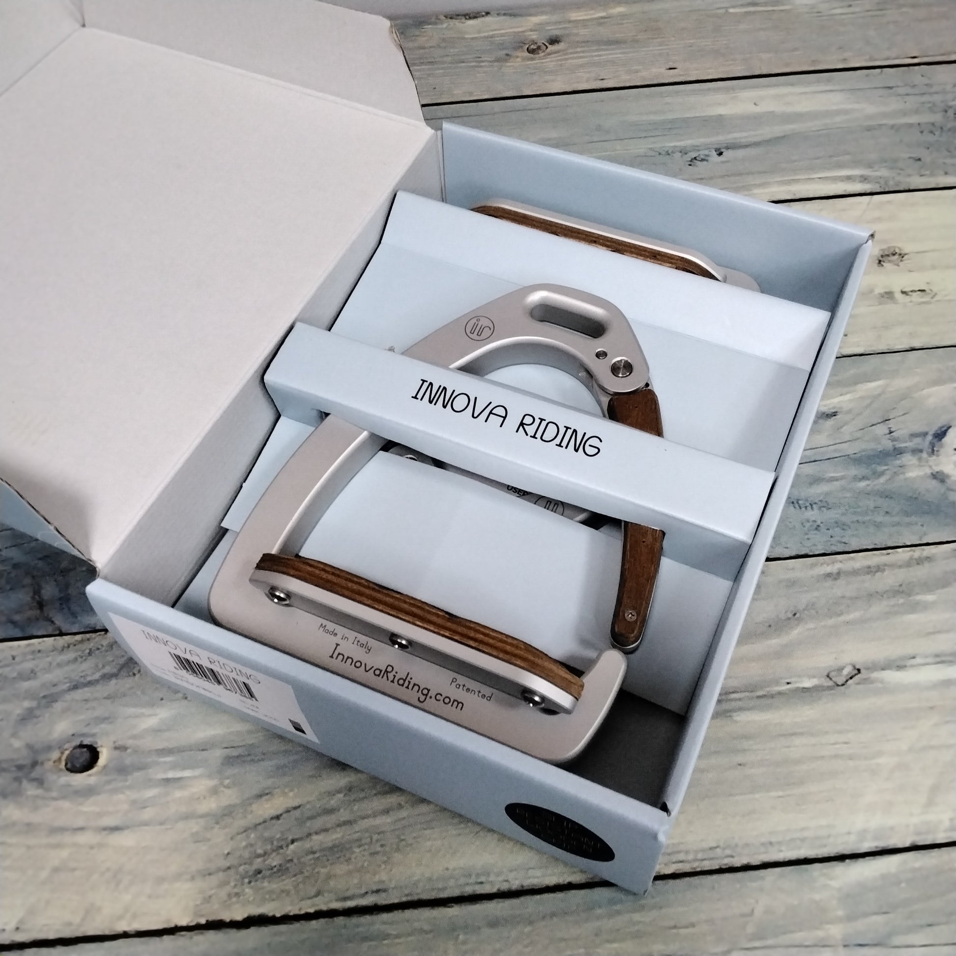 Innova Riding Aria Sicherheitssteigbügel silver+dark wood