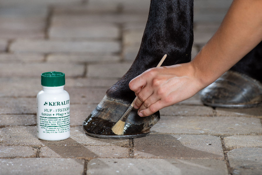 Bei beschlagenen Pferden pinselt man den KERALIT Huf-Festiger auf das unterste