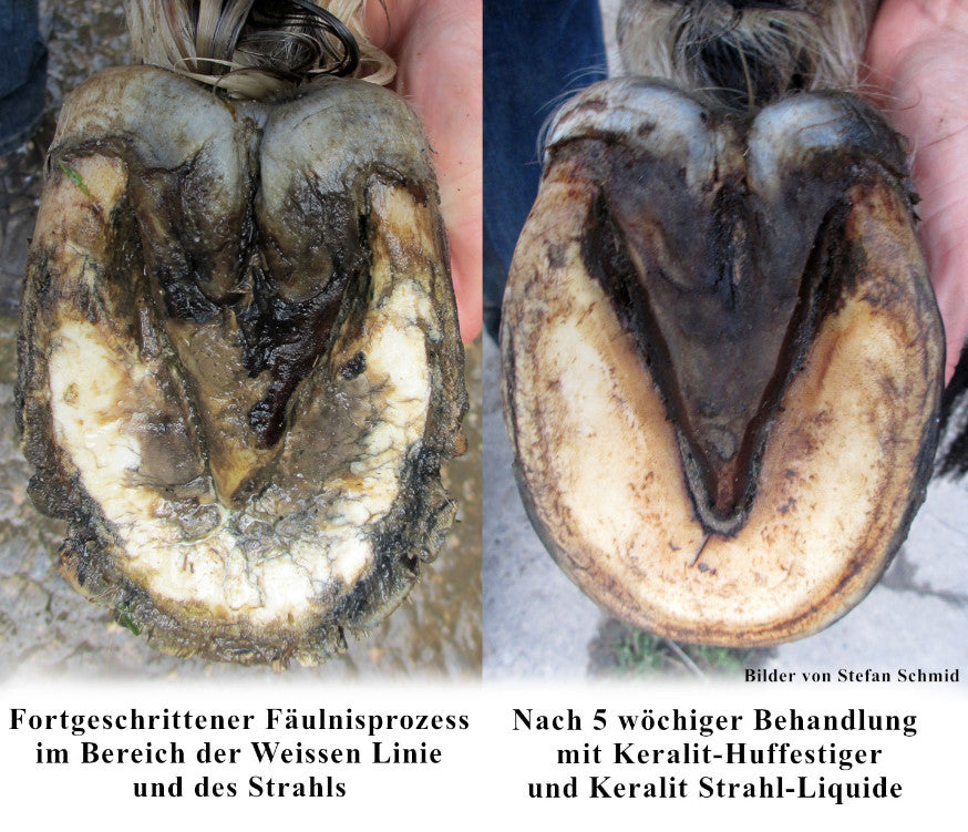 - Fäulnisprozessen und Rissen der Hufwand