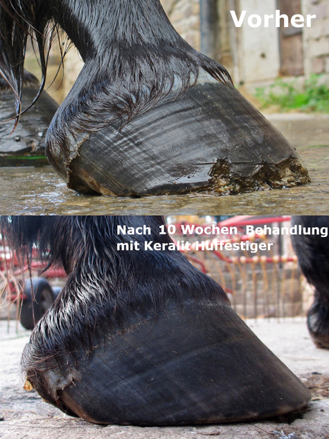 Das beste Ergebnis erhält man, wenn der KERALIT Huf-Festiger auf den trockenen