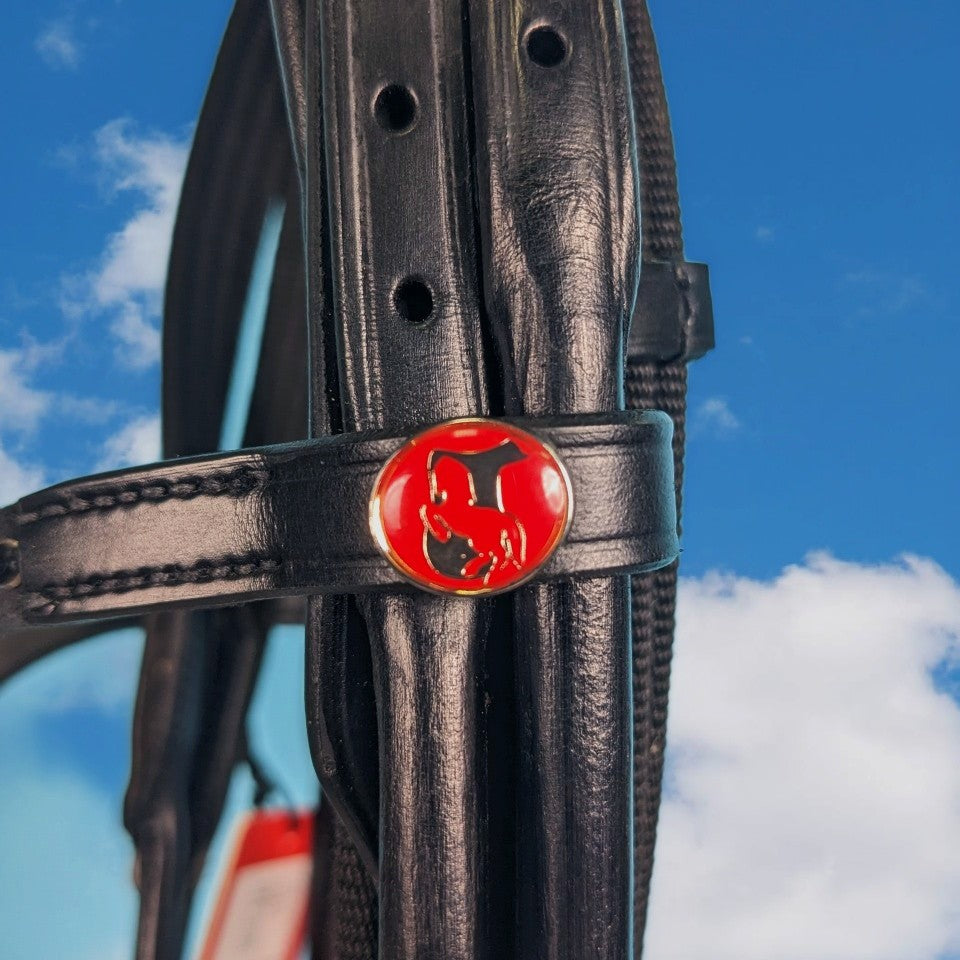 - Konisches Reithalfter wahlweise mit oder ohne Lackleder schwarz oder weiß unterlegt