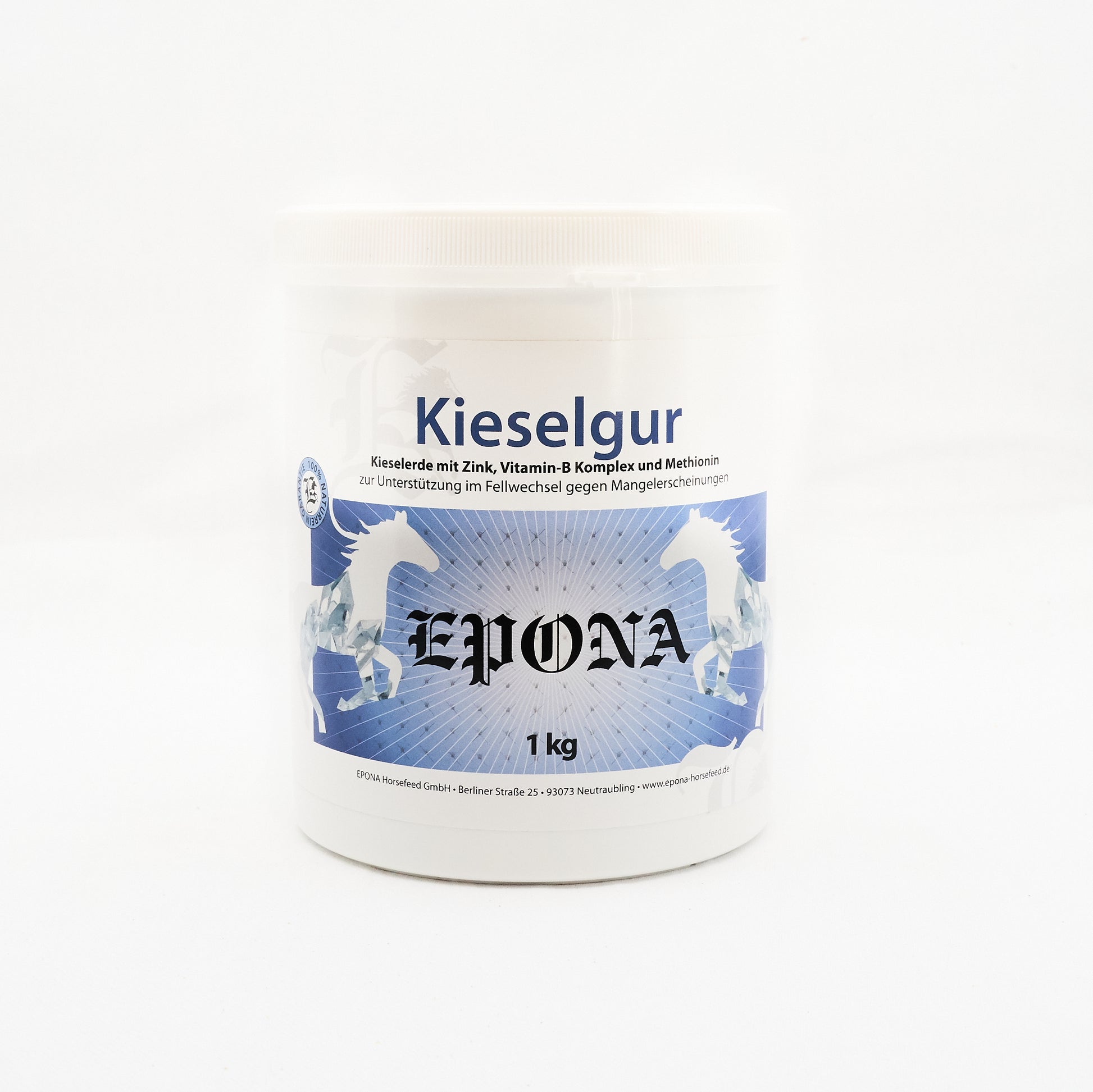 Kieselerde (anorganisches Silizium) ist für die Flüssigkeitsregulierung innerhalb der Körperzellen zuständig. Sie gibt den Zellwänden Festigkeit, Elastizität und aktiviert Zellaufbau sowie den Stoffwechsel. EPONA Kieselgur stärkt somit das Hautbindegewebe sowie die Bänder und kann das Hufhorn kräftigen.