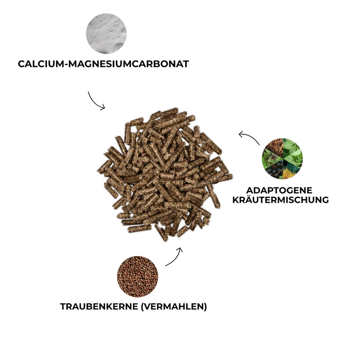 - Die Pellets werden einfach unter das Basisfutter gemischt oder pur gegeben.