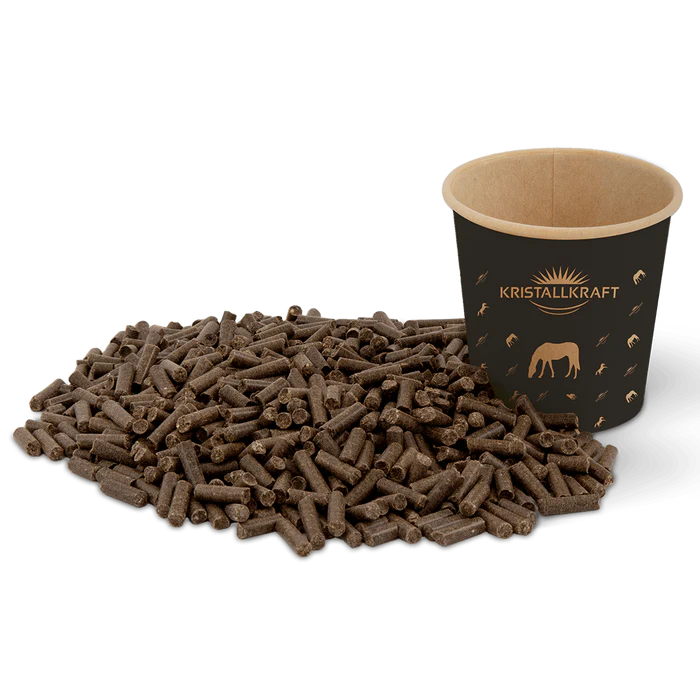 - Kleinpferde und Ponys entsprechend weniger.- Die Pellets werden einfach unter das Basisfutter gemischt oder pur gegeben.