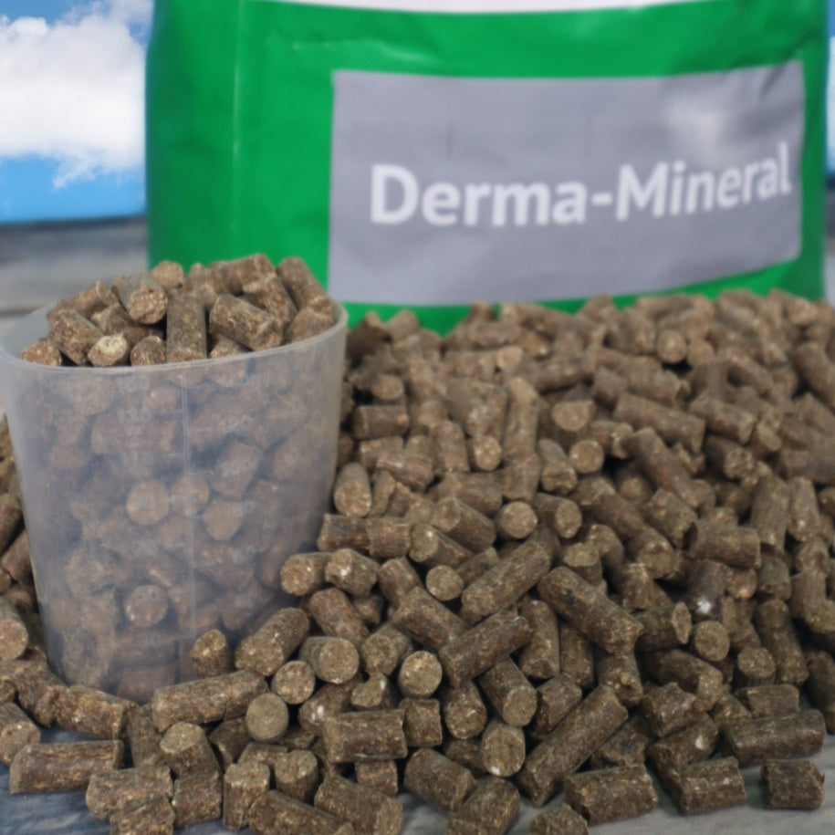 Hochwertiges Mineralfutter speziell für Pferde mit Haut- und Fellproblemen. Derma-Mineral enthält eine bioverfügbare Mineralstoff-, Vitamin- und Spurenelementversorgung die gezielt mit Traubenkernen, Seealgen, Schwärzkümmelöl, Kieselgur, Bentoniten, Leinöl und speziellen Hefen kombiniert ist
