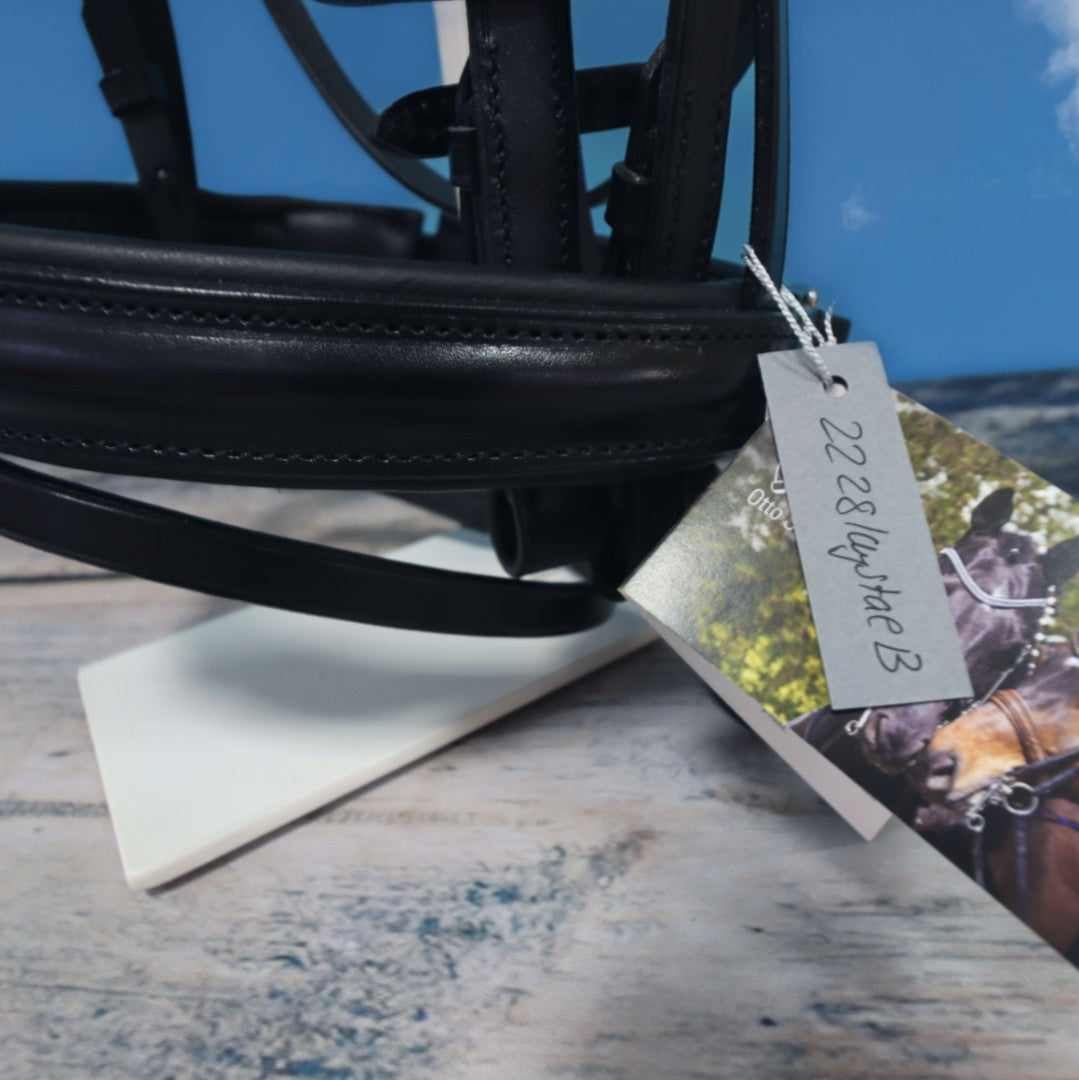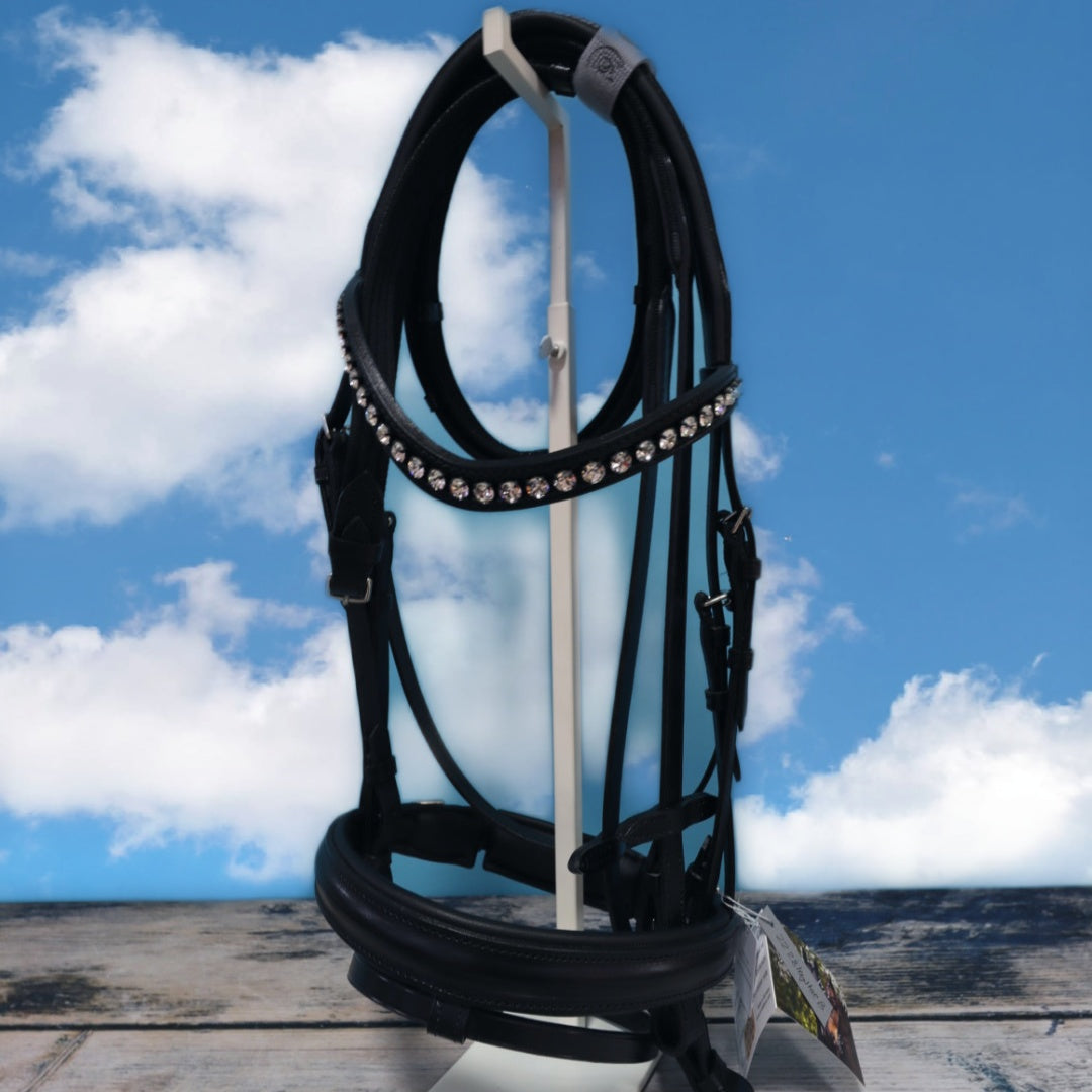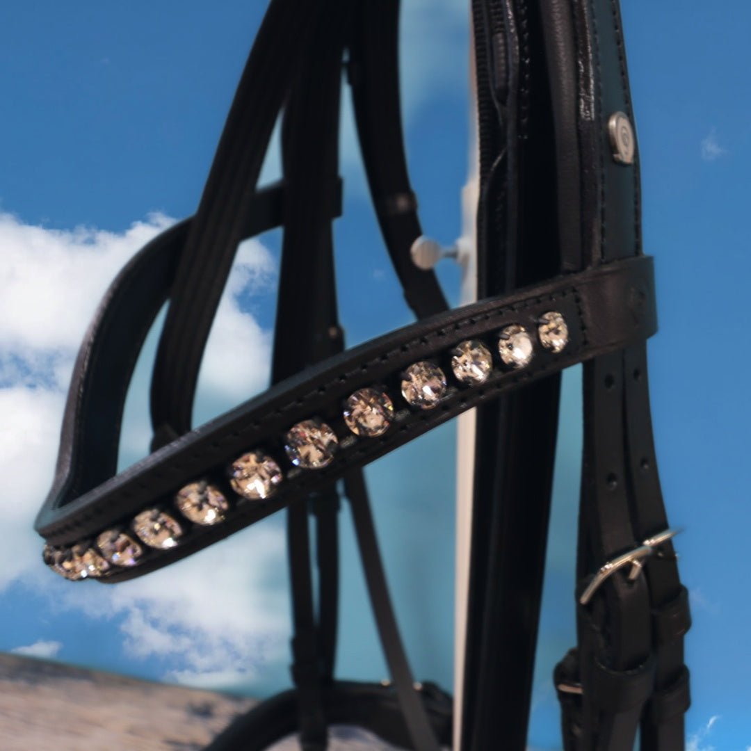 Otto Schumacher Zäume sind wunderschön und einzigartig. Sie werden höchsten Ansprüchen gerecht. Das Modell Black Line ist ein edler Trensenzaum aus der Sattlerei Otto Schumacher. Dieser Trensenzaum aus bestem schwarzem Zaumleder verfügt über ein Spezial Reithalfter und Edelstahlbeschlägen. Das Reithalfter ist besonders weich und Ton-in-Ton gepolstert. Das ausgeschnittene Genickstück ist ebenfalls weich unterlegt. Zusätzlich verfügt Sie einen besonders edlen Stirnriemen der die Trense zu einem Hingucker werder lässt. Inkl. Gurtzügeln.